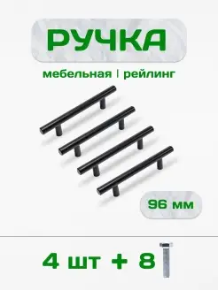 Ручка мебельная рейлинг черная 96мм для шкафа
