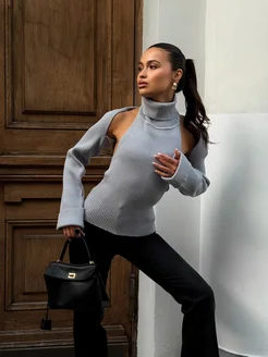 Вязаный топ с кардиганом свитер женский