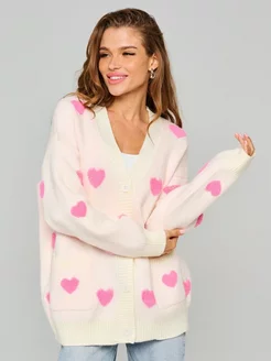 Кардиган женский удлиненный на пуговицах оверсайз сердечки