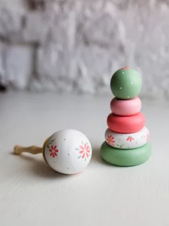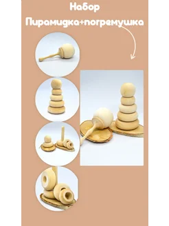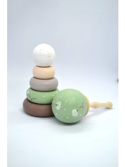 Деревянные Пирамидка и Погремушка. Развиваюдий набор