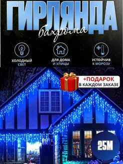 Новогодняя гирлянда-бахрома 25 метров синяя