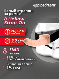 Полый страпон 8" Hollow Strap-On телесного цвета - 19 см