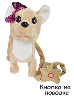 Интерактивный мягкая игрушка Щенок на поводке Cобака 26см