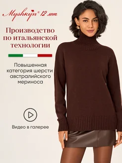 Свитер с горлом вязаный оверсайз длинный