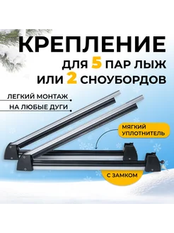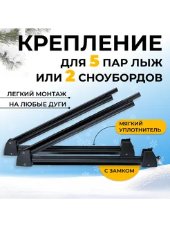 Крепление для 5 лыж и сноубордов на крышу автомобиля черное