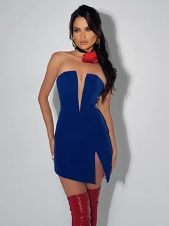 Платье AMORINO корсет мини синее