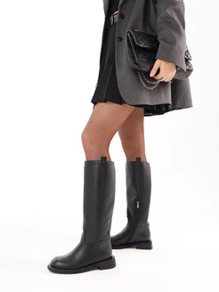 Лоферы натуральная кожа черные туфли на низком каблуке