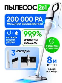 Вертикальный пылесос проводной с турбо щеткой и подсветкой