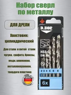 Сверла по металлу набор, 6 шт от 2-8 мм