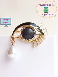Брошь черный Глаз с золотистыми ресничками