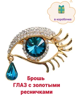 Брошь синий Глаз с золотистыми ресничками