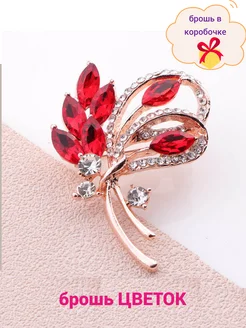 Брошь стразовая красный Цветок