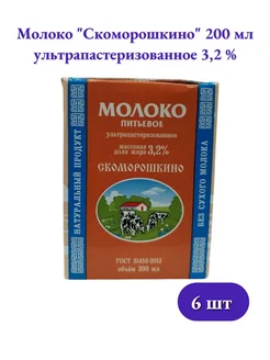 Молоко ультрапастеризованное Скоморошкино 3.2% 0,2 л 6 шт