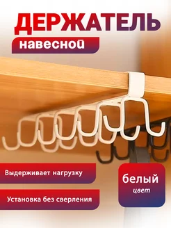 Держатель кухонный навесной для кружек и чашек белый