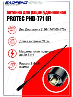 Усиленная антенна для рации Протек PHD-771 SMA-Female (мама)