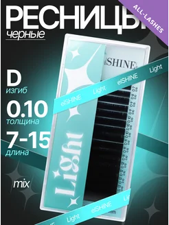 Ресницы для наращивания эльшайн лайт черные D 0.10 7-15