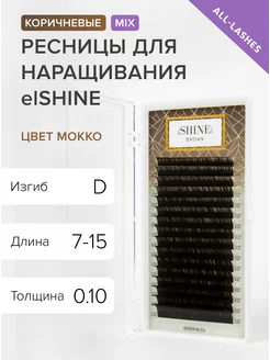 Ресницы для наращивания коричневые микс изгиб D 0.10 7-15мм