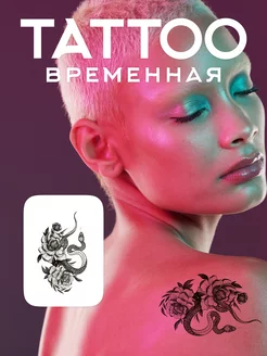 Переводная временная тату цветы и змея