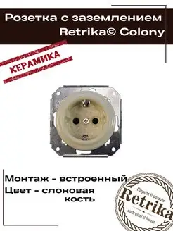 Ретро розетка керамическая с заземляющим контактом