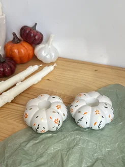 Подсвечники Тыква для столовых свечей с осенней росписью