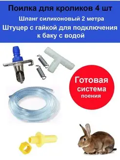 Поилка для кроликов 4 шт + Шланг 2 метра + штуцер с гайкой