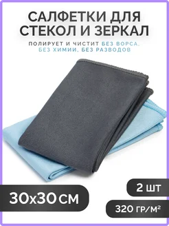 Салфетка для стекол и зеркал 30х30, 2 шт