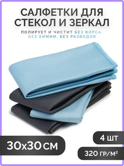 Салфетка для стекол и зеркал 30х30, 4 шт