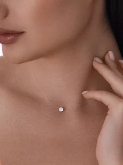Колье на леске серебро 925 невидимка подвеска на шею фианит