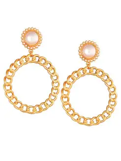 Серьги-кольца с жемчужиной и звеньями цепи