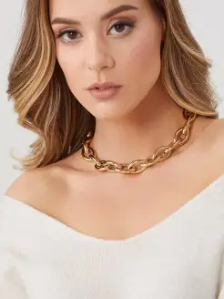 Золотистое крупное колье-цепь
