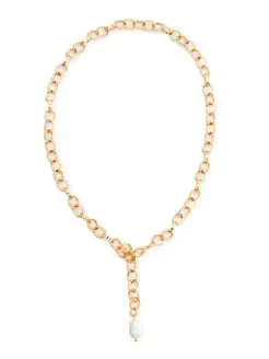Колье-сотуар в позолоте с жемчугом и цепочкой