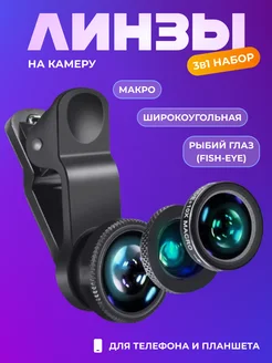 Линза на камеру для телефона и планшета набор 3-в-1