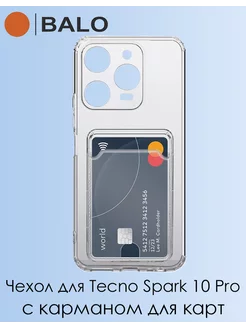 Чехол для Tecno Spark 10 Pro c карманом для карт, прозрачный