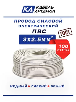 Провод электрический ПВС 3х2.5 ГОСТ 100 метров