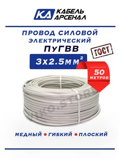 Провод электрический ПуГВВ 3х2.5 ГОСТ 50 метров