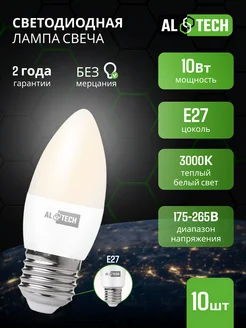Лампочки светодиодные E27 10Вт 3000K теплый свет, свеча 10шт