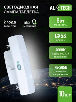 Светодиодные лампочки GX53 8Вт, нейтральный свет 4000K 10 шт