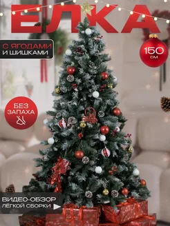 Елка искусственная новогодняя с ягодами и шишками 150 см