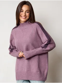 Свитер оверсайз кашемировый удлиненный с воротником стойка