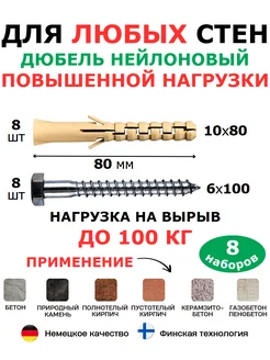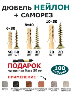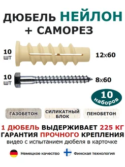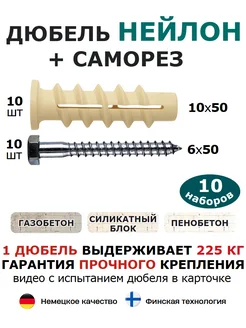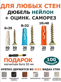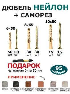 Набор нейлоновых дюбелей для любых стен и газобетона