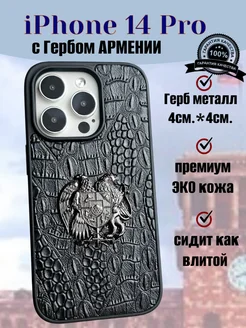 Чехол на iPhone 14 Pro с гербом Армении эко кожа