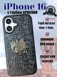 Чехол на iPhone 16 герб Армении эко кожа