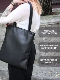 Шоппер чёрный кожаный на молнии с карманами на замке