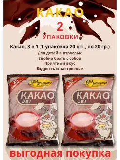 КАКАО, 3 в 1 20 гр по 20 шт. 2 упаковки