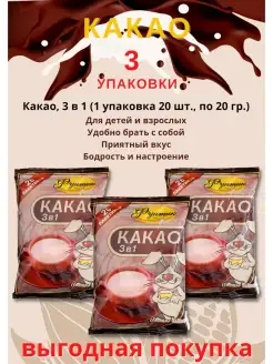 КАКАО, 3 в 1 20 гр по 20 шт, 3 упаковки