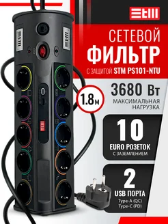 Сетевой фильтр удлинитель, USB, предохранитель, 10 розеток P…