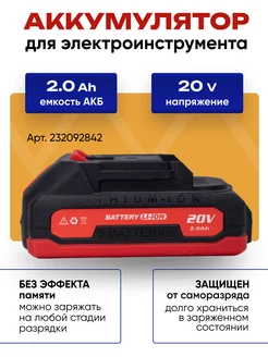 аккумулятор для электроинструмента Li-lon 20в 2ач