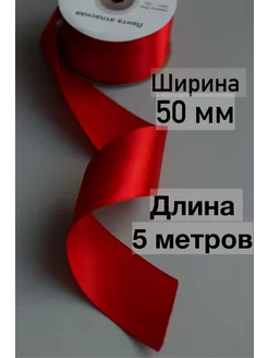 Лента атласная упаковочная новогодняя красная 5 см