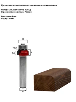 Фреза кромочная радиусная с подшипником R1,5 хвостовик 8