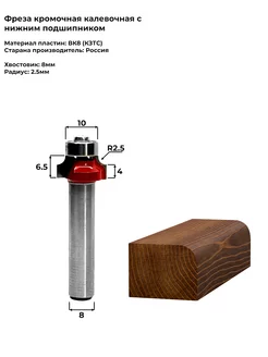 Фреза кромочная радиусная с подшипником R2.5 хвостовик 8